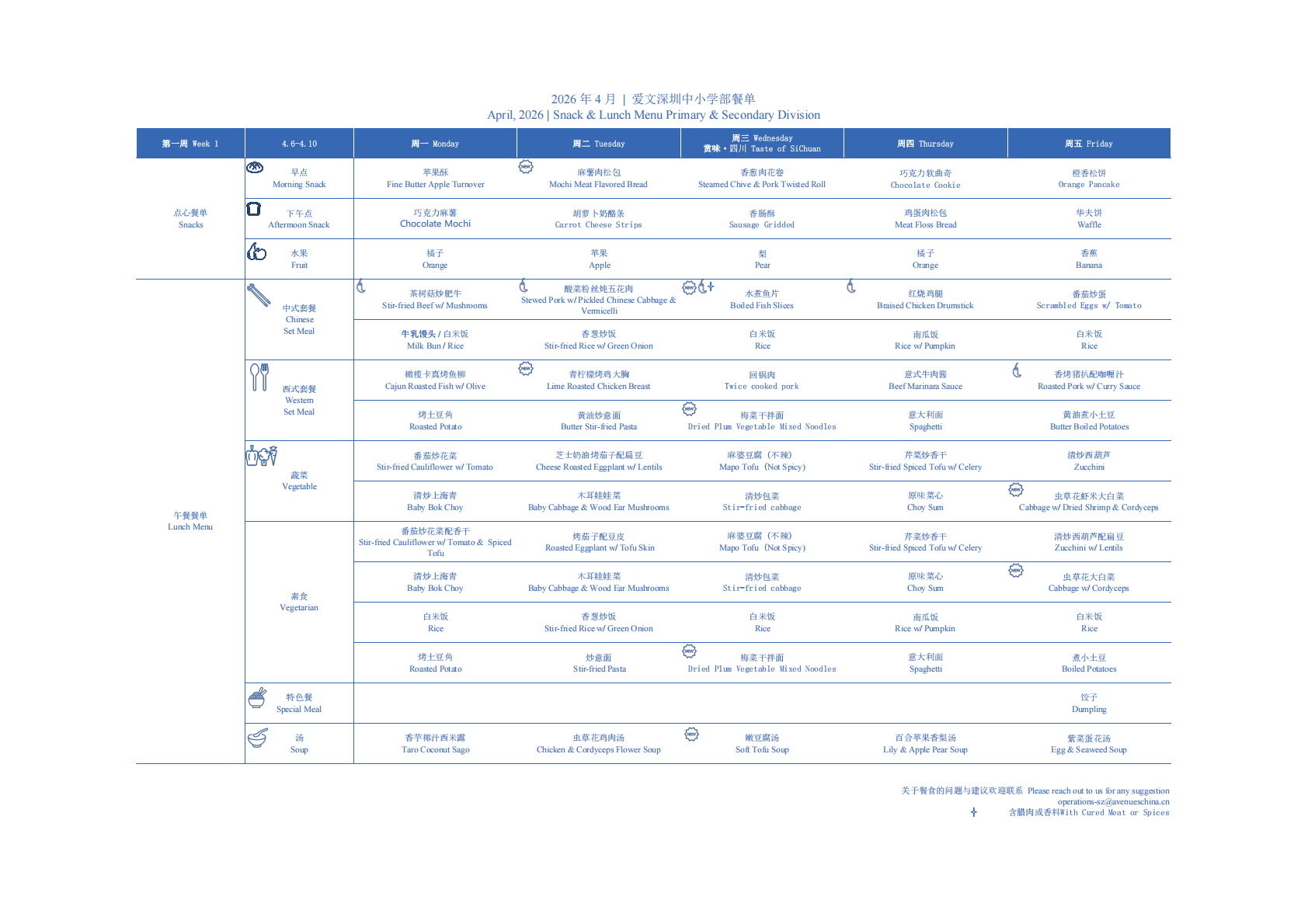 Monthly menu